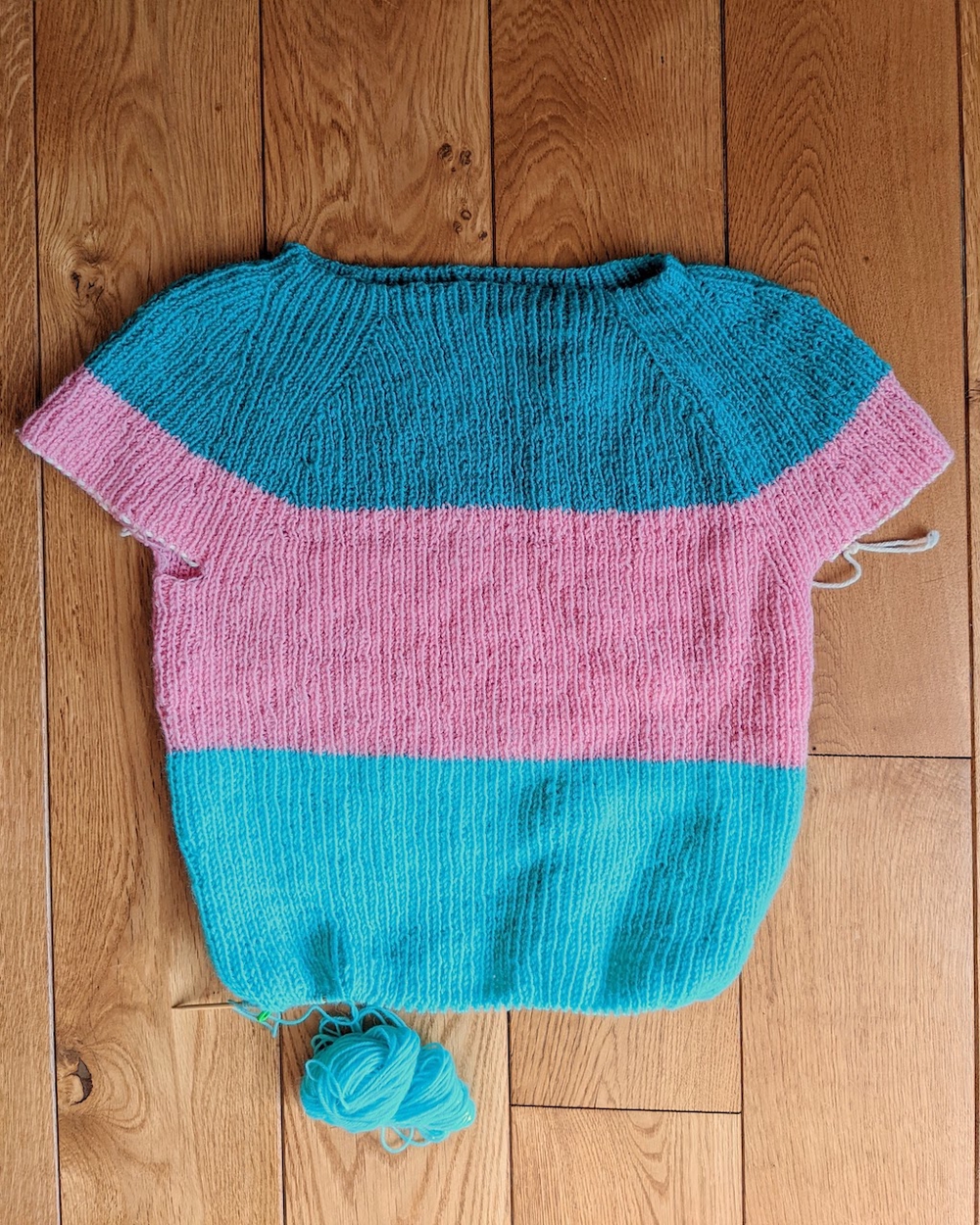 Here’s my customary weekly knitting progress shot. I feel like I’ve been close to the end of this ball of yarn for weeks. Surely it’s going to run out soon? I’m going to decide on a whim which colour I switch to next. It will probably be dark pink.
