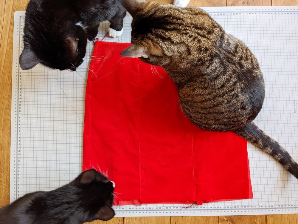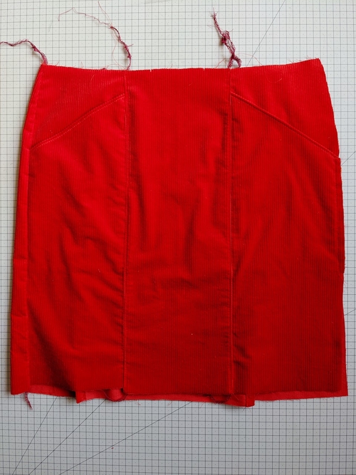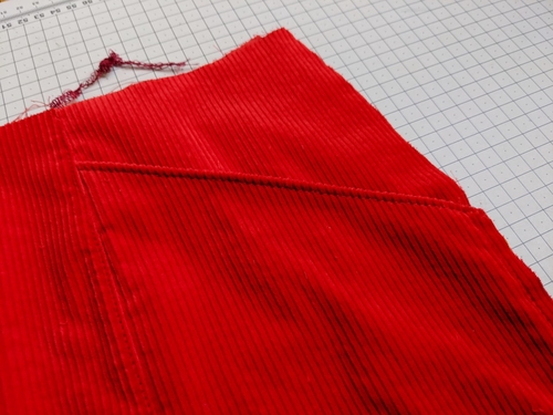 So I’m on the final project now. I’m going entirely out of my comfort zone with this fabric choice. Corduroy! Fiery orangey red! I had never worked with corduroy and this colour is not like anything in my traditional colour palette so this was brave/reckless. It may or may not have something to do with the fact that I made my fabric choice the morning after a big boozy work party. I may or may not have been thinking straight.