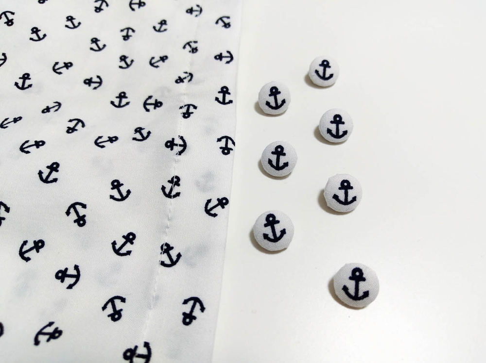 I’d never made self cover buttons before, so when I made these I was really giddy at how perfectly they came out. Check out how they’re the perfect size for an anchor to fit on!