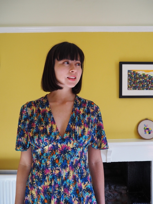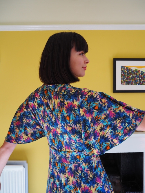 It does have a directional print, and this pattern technically shouldn’t be made with a directional print, because some of the skirt is on the bias and the back of the sleeves are upside down. But I don’t really care - I think the print is abstract enough that you would need to look closely to recognise that they are palm trees. I’m OK with it.
