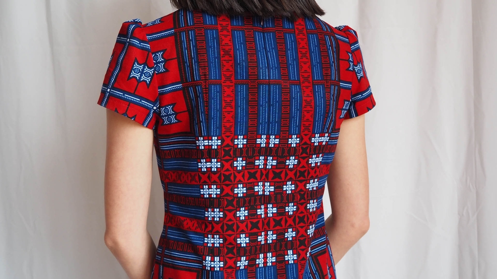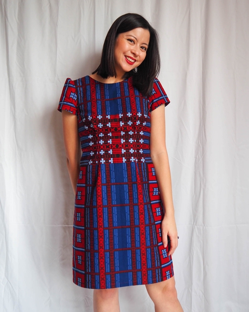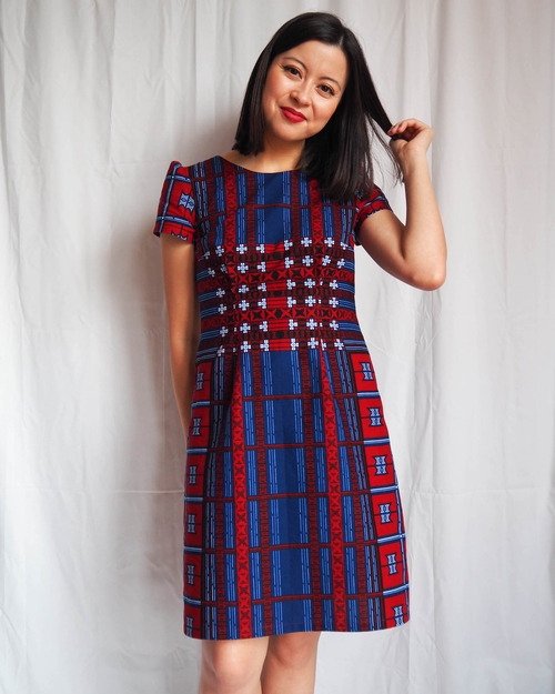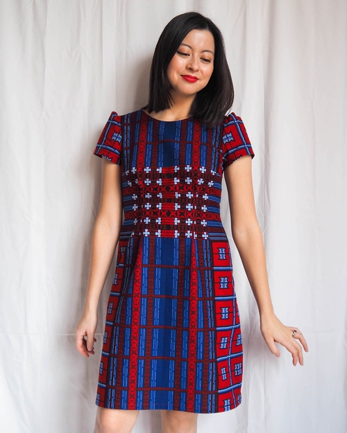 I chose this dress pattern because it has clean, simple style lines, which let the fabric be the star of the show. It also has a lot of straight seams which makes pattern matching much easier! The pattern also recommends fabrics with a little bit of structure to their drape, and even suggests quilting cotton - so I knew it would work nicely in wax print, which has a little bit of sturdiness to it.