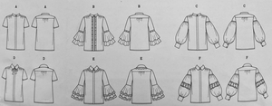 The combo I’m most likely to start with is the Liberty Thea in the Liberty Glastonbury fabric. I’m thinking the collar and necktie from view D, and the sleeves from view C. Assuming I have enough fabric.