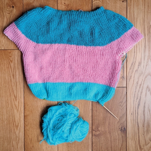 I have loads more of the pink, so I’m thinking of doing one sleeve in pink and the other in a different colour.