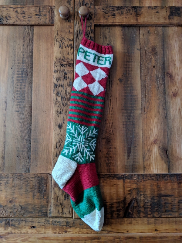 My first ever stranded colourwork project. I didn’t really know what I was doing, and made my floats far too short - so it’s not very stretchy! This means it’s not very effective for putting presents in, so it became a decorative item in the end.