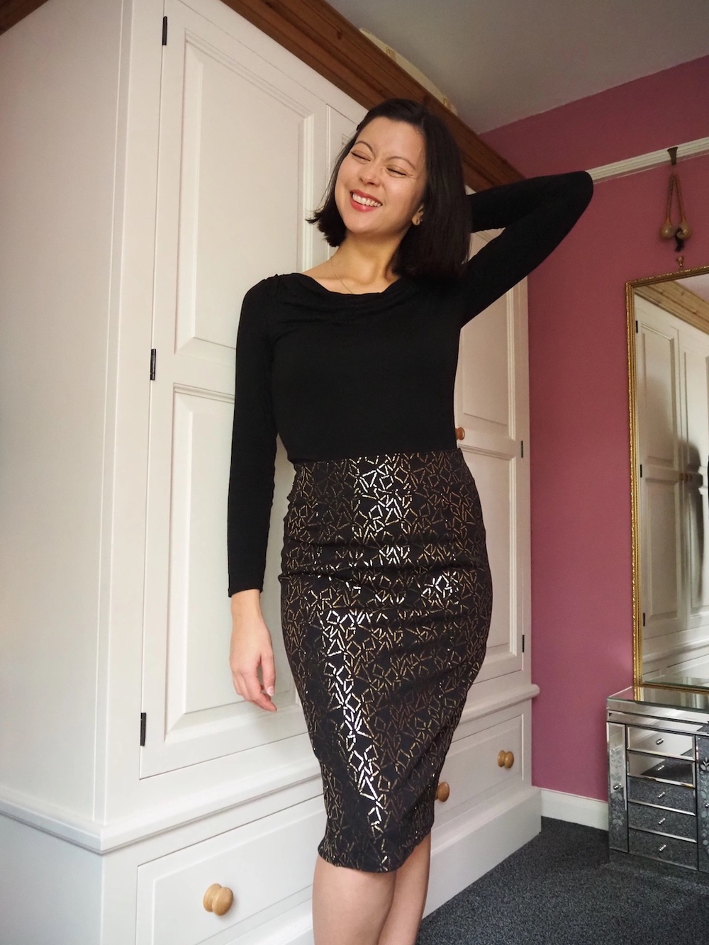 Foil Bibi SkirtProject detailsTagssewingtilly and the buttonsCompletedOctober 2022PatternBibiDesignerTilly and the ButtonsMaterialsYarn/FabricFoil stretch polyester from Kirkgate Market, Leeds⬅ Previous projectGlow in the Dark Radiator Cat NestNext project ⮕Teal Bibi Skirt