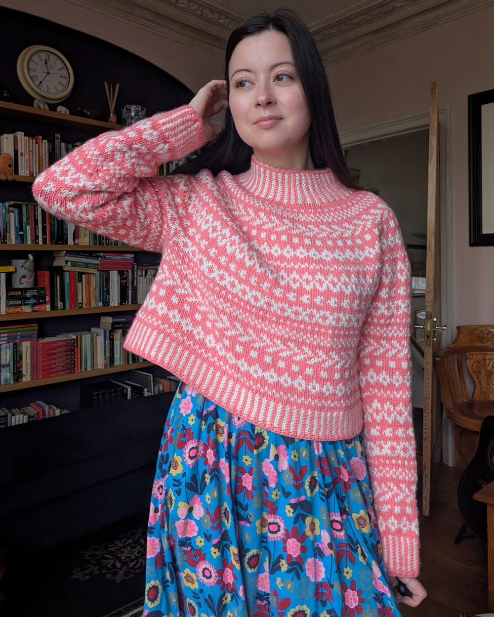 Pink Clair De Lune SweaterProject detailsTagsknittingSaskie & CoCompletedApril 2025PatternClair De LuneDesignerSaskie & CoMaterialsYarn/FabricCascade 220 from Wool Warehouse⬅ Previous projectBlack Seersucker Luella SkirtNext project ⮕Blue Denim Winnie Trousers