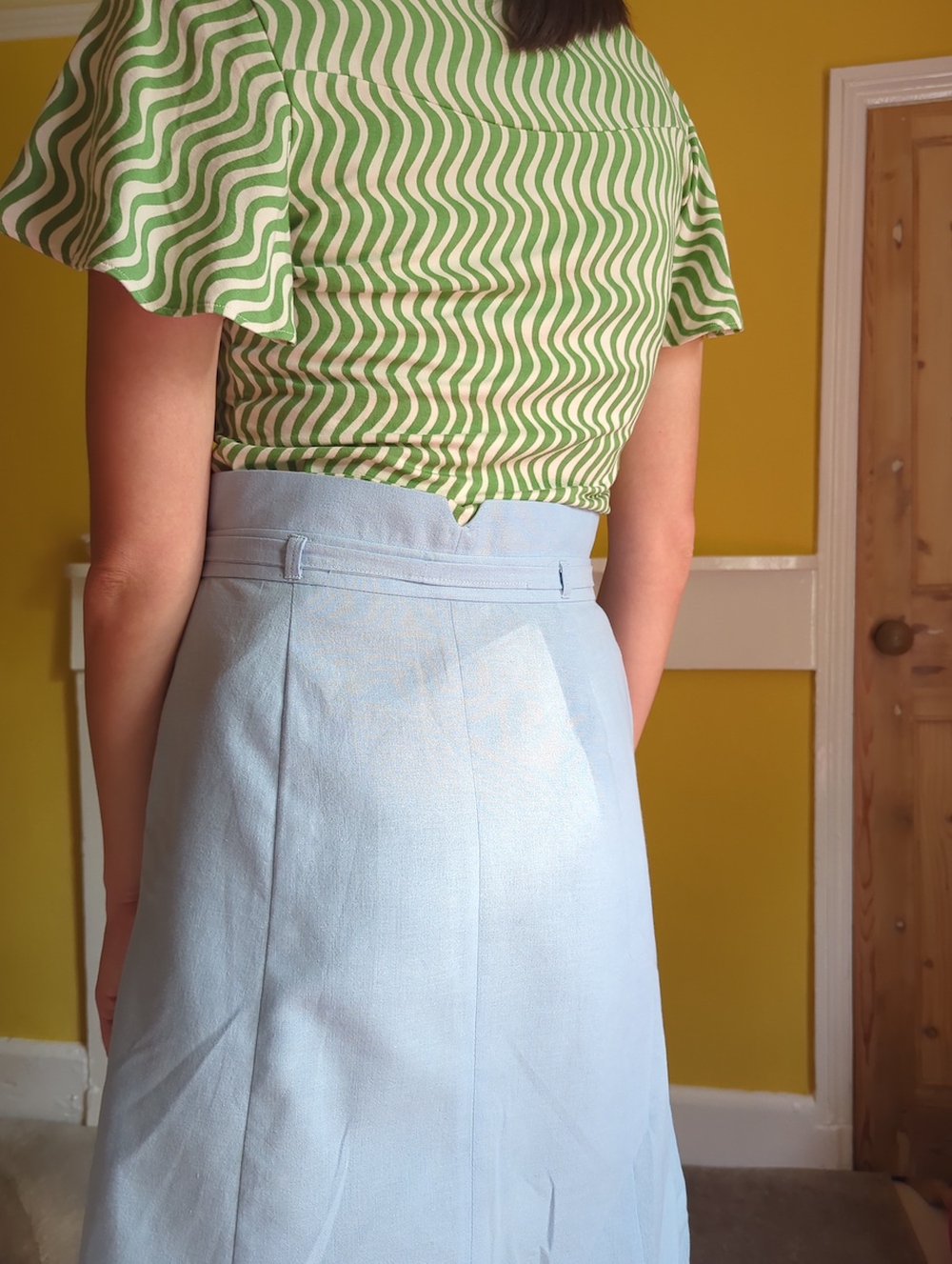 That doesn’t mean it’s boring - it’s not. There are some really nice elements to the pattern where you can sense the quality of the drafting. For example, the waistband is made from gently curved panels, and they form a beautiful V shape at the centre back - which is echoed at the centre front where the waistband overlaps itself. Very elegant, and satisfying to put together.