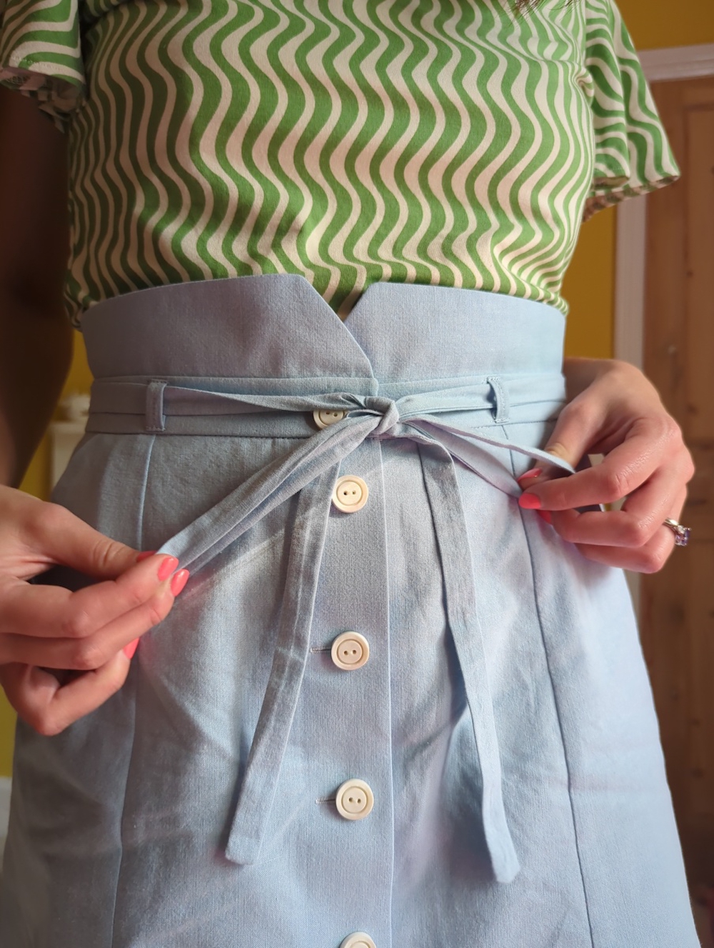 I made my Natalie skirt in the A-line view and the shorter length. I’m 5'6", for reference.