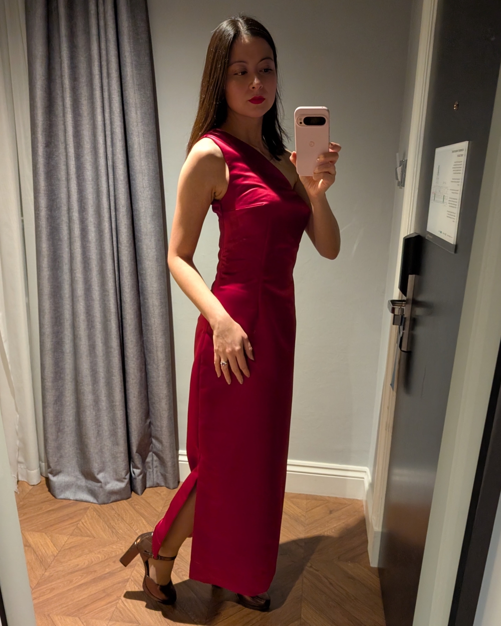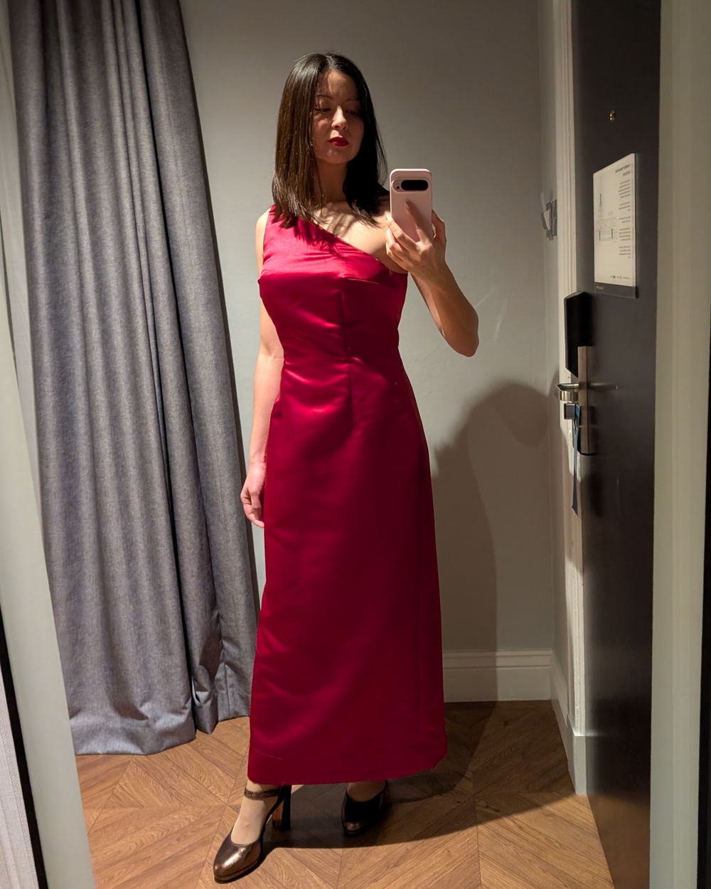 I was pretty happy with the fit at this point. And to be fair - fitting this dress was generally pretty easy for me. I’ve spent a lot more time fitting other dresses before. My scoliosis means I often get asymmetry in fitted garments, but given that this was a one-shoulder design, asymmetry was par for the course anyway.