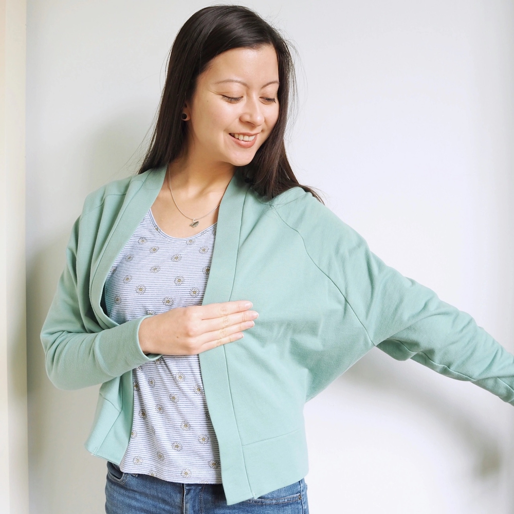 Green Bertha CardiganProject detailsTagssewingtilly and the buttonsCompletedOctober 2020PatternBerthaDesignerTilly and the ButtonsMaterialsYarn/FabricFrench terry from Stoff & Stil⬅ Previous projectFabric BucketNext project ⮕Tomato Vera Top